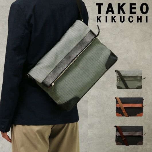 大人な雰囲気の杢調ヘリンボーン生地を使用した、TAKEO KIKUCHIのカジュアルショルダーバッグ。