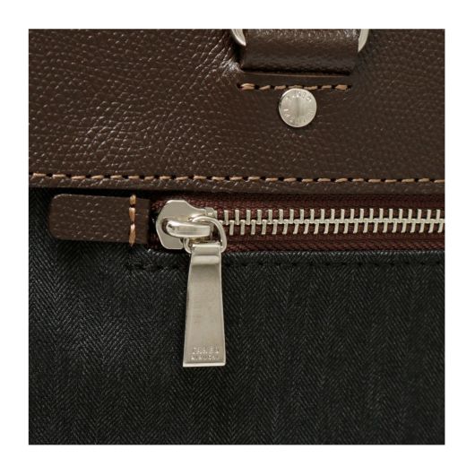 ヘリンボーン柄で織られた素材感のある大人っぽい印象の素材になります。表面には撥水加工を施し、裏面にカツラギを溶剤で圧着していますので、汚れが付きにくく、水が中に染み込むことがなく、抗ピリング加工により耐久性もある鞄用素材に仕上がっています。