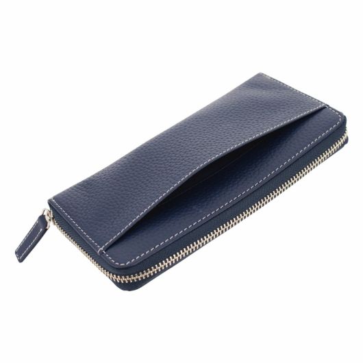シュリンクレザーにカラーアクセントでラインデザインを取り入れたシリーズです。シンプルながら程よいカジュアル感のバランスがポイントです。オールレザーで仕上げ、耐久性と手触り感の良さも特徴の1つです。収納性も持たせたシリーズですのでカード等を多く持つ方におすすめです。