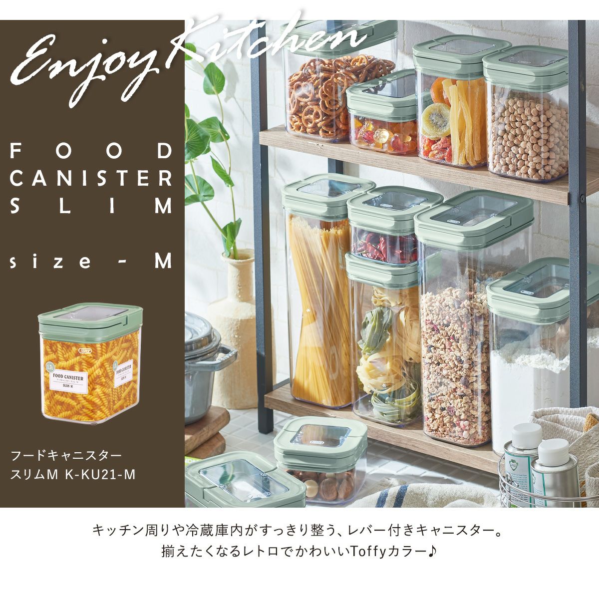 他の画像を見る Toffy トフィー フードキャニスター トフィー 保存容器 フードキャニスター スリム M 1.7L K-KU21-M Toffy|密閉 レバー式 大きめ 大容量 調味料 ケース 乾物 スタッキング スタック ストッカー プラスチック シンプル レトロ おしゃれ ラドンナ 販売価格 ¥ 1,870 税込 詳細を見る お気に入りに登録する