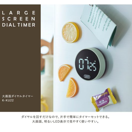 K-KU22 Toffy|大画面ダイヤルタイマー 乾電池式 アラーム 磁石 マグネット ストップウォッチ キッチン家電 レトロ おしゃれ かわいい 6ヶ月保証
