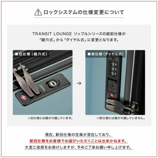 TRANSIT LOUNGE リップルシリーズの錠前仕様が「鍵穴式」から「ダイヤル式」に変更となります。