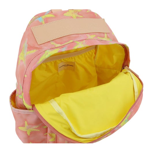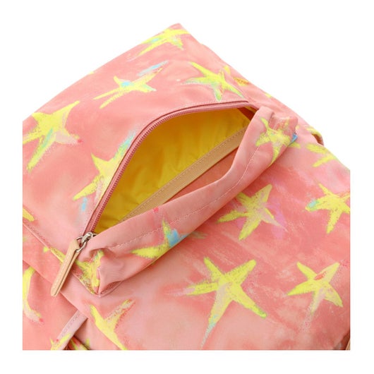 ファスナーを開けるとポップな色遣いの裏地が可愛く、ネーム入りのテープもポイントです。