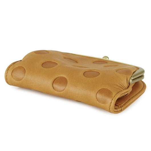 上質なふんわり柔らかいカウレザーを使用しました。シンプルで飽きのこないベーシックなデザインとなっていますが、ドット柄がポイントになり可愛らしい印象に仕上がっています。普段使いしやすいサイズ感です。本牛革ならではの経年変化を楽しみながら長くご愛用いただけます。