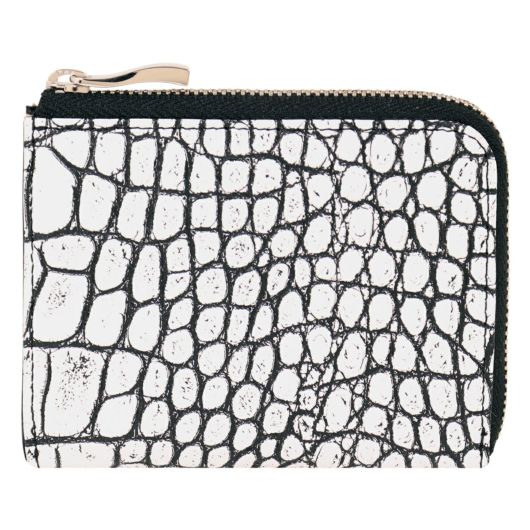 。表面にクロコの型押しが施された上品で高級感漂うデザイン。ファスナーはYKK社製のものを使用しており開閉もスムーズ。視認性が良く薄くてもカードやお札などをしっかりと収納できます。小銭入れがオープンポケットタイプなのでサッと取り出すことができます。