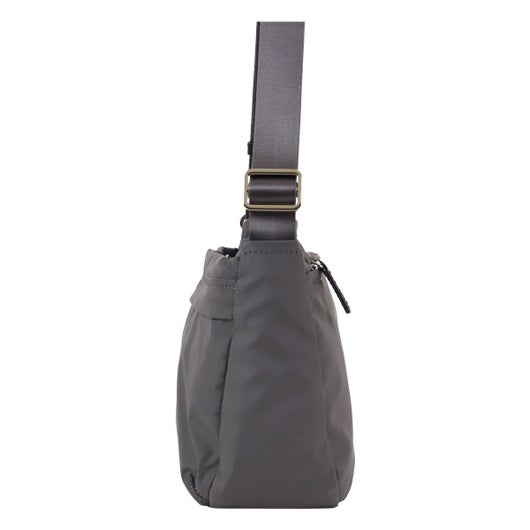 定番的な人気のシリーズのショルダーバッグに、新サイズが登場!メインの生地はレインコート等にも使用されるナイロンタフタを使用しており、高密度の撥水ナイロンタフタにメリヤスを貼り手触りの良い柔らかい質感を表現しました。ポリエステルと比べて耐衝撃性に優れ、裂けづらくしわになりにくい素材です。軽量で使いやすくデイリーからトラベルまでさまざまなシーンに対応します。仕切りポケットも多く荷物の仕分けがしやすくなっているのもポイント。
