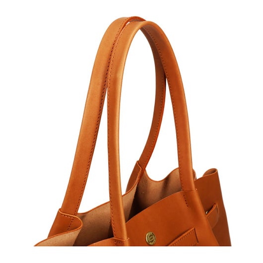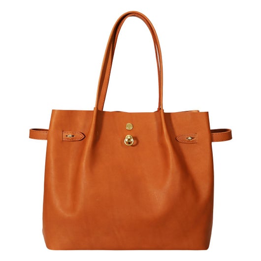 トートバッグは、持ち手を本体で挟むように取り付けられているため、自然とドレープが生まれ上品なシルエットになります