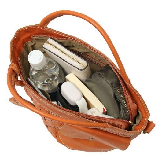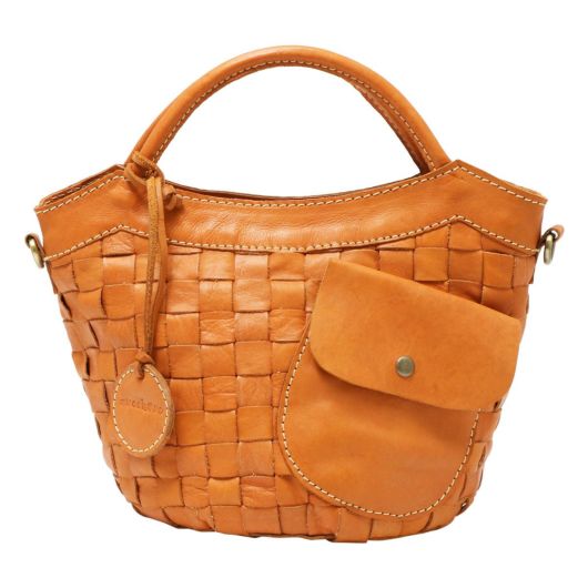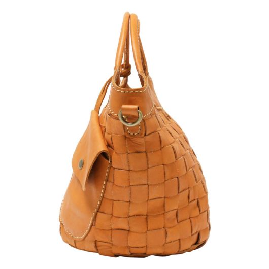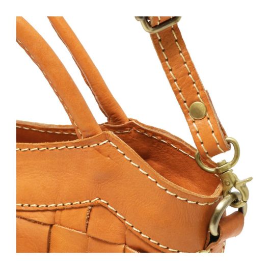 厳選された本革を、バスケットのように編み込んだ素材使いがかわいいバッグのシリーズ。職人の手により、1枚ずつ手で染めては天日で乾かすなどの工程を何度も繰り返して仕上げたカウレザーを使用しています。