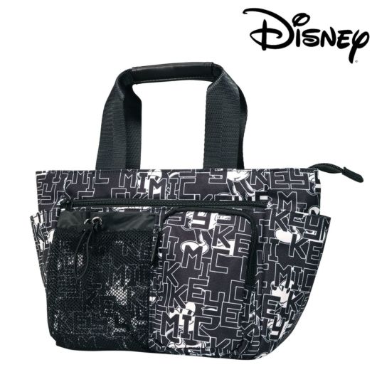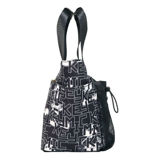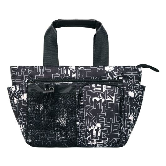 ミッキーとロゴをモノトーンカラーでアレンジしたラウンドトートです。間口が大きく、荷物の出し入れがしやすい設計です。内側と外側に多数のポケットがあり、収納力に優れています(外側6ポケット、内側3ポケット)。ハンドル上部は合皮巻きで、持ちやすいデザインになっています。