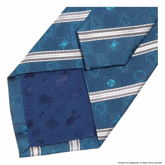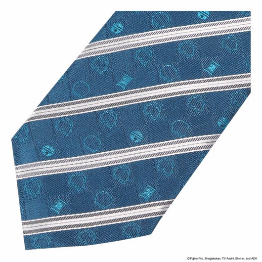 ひみつ道具の「どこでもドア」とドラえもんの後ろ向きの頭、おしり、鈴を小さなアイコン風にしたモチーフとストライプを組み合わせたネクタイです。さりげなくドラえもんの世界観を表現していて、ギフトにもお勧めです。