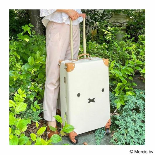 ミッフィーとボリスのかわいいフェイスのトランクキャリー。合成皮革で作られておりクラシカルでおしゃれな雰囲気。内装のファスナートップはキャラクターの形で、細部までこだわった作りです。別売りのミニトランク(HAP3109-27)とお揃いで使っても可愛い!