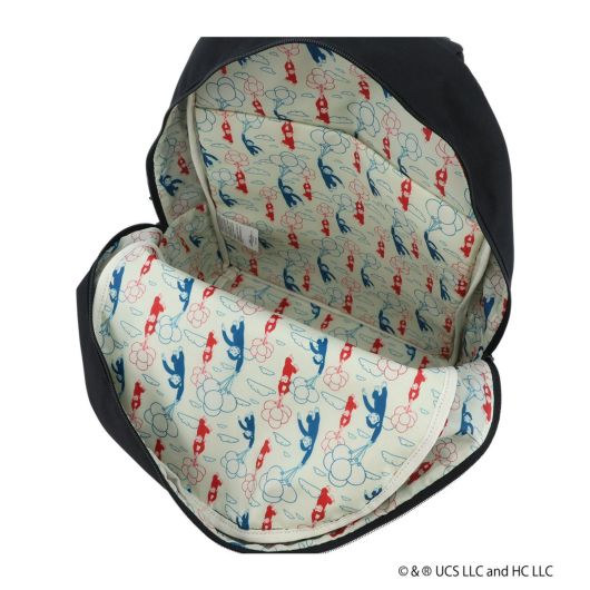 前面はジョージのプリントネーム風デザイン。内装は可愛い総柄プリント。ジョージアクリル、テープチャーム付き。お持ちのバッグに付け替え可能で、いつでも一緒にお出かけ出来ます。本体は厚み感もあり、しっかりとした作りに仕上がった、シンプルリュックデザイン。