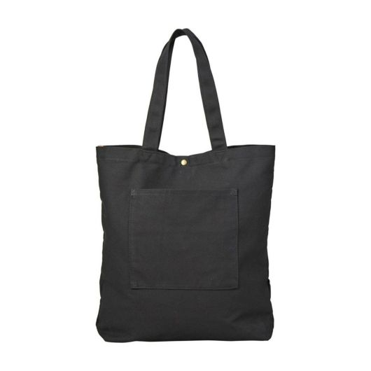 デザインだけでなく、実用性も抜群。軽くて丈夫な帆布素材でA4サイズが入る大きさです。開口部はマグネットボタン仕様。内装は小物を収納できるポケット付きで、背面にも大き目のポケット付きです。