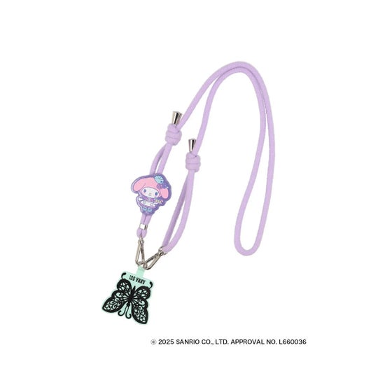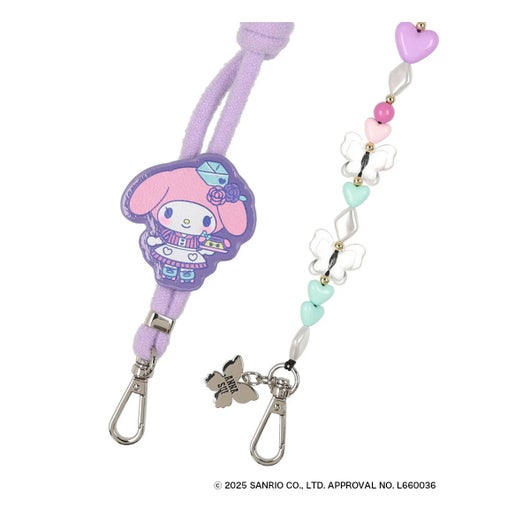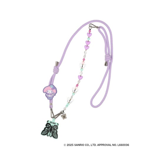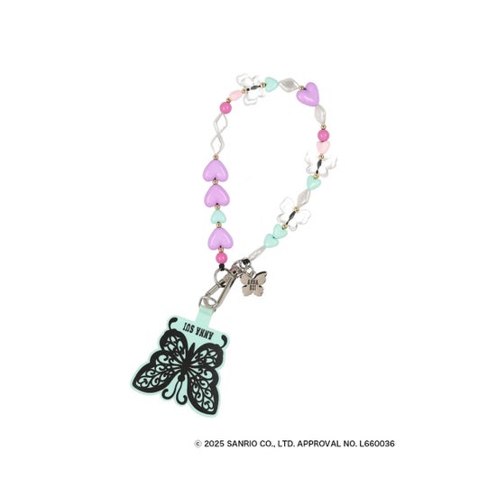 マイメロディ50周年&クロミ20周年を記念した、ANNA SUIとのスペシャルコラボレーションアイテムが登場し、夢の共演を果たしました。今回のテーマは、“アメリカンダイナー”。オリジナルアートでは、ウェイトレス姿のマイメロディとクロミがアニバーサリーをお祝いする様子が描かれています。さらに、アイスクリームやドリンクに扮したANNA SUIのモチーフがさりげなく登場するなど、遊び心あふれるデザインも魅力のひとつです。マイメロディは、やさしくておだやかな雰囲気に合わせて、パステルカラーのビーズでほんのり甘く仕上げました。ちゅるんとしたバタフライビーズがアクセントになり、手元にやわらかなときめきを添えてくれます。ビーズ部分は取り外し可能で、ハンドストラップとしても使用可能。