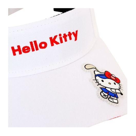 ハローキティとのコラボレーションコレクション。本コラボレーションのために描き起こされたニューエラキャップをかぶったハローキティ、ハローキティのアイコンでもあるリボンやりんごモチーフとニューエラロゴを組み合わせたデザインなど、コラボレーションならではのデザイン。バイザーを通常より10mm長い仕様にアレンジしたサンバイザー。日光の遮蔽効果に優れています。リアのベルクロストラップで頭回り約52cmから55.8cmまでサイズ調整が可能です。