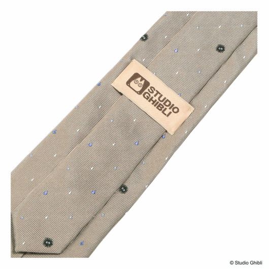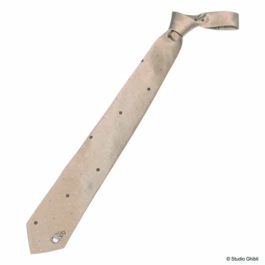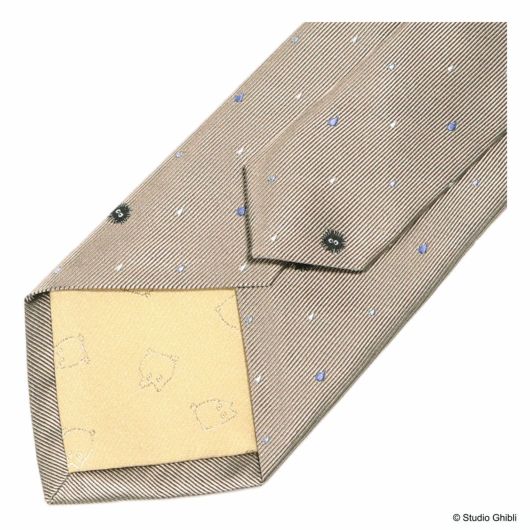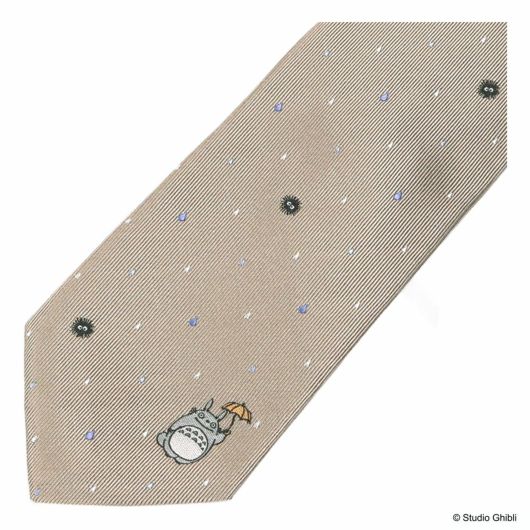 印象的な雨のシーンを彷彿させる、傘をさして喜ぶトトロのワンポイントです。色とりどりの雨粒の中に「マックロクロスケ」がちりばめられています。鬱陶しい雨の日も楽しく過ごせそうなデザインのネクタイです。