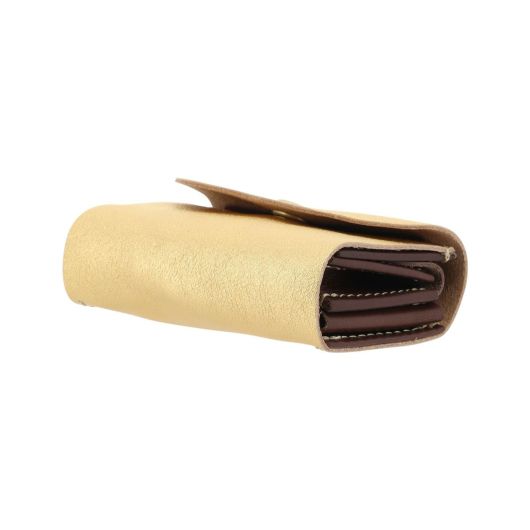 メタリックカラーがアクセントとなり、その光沢が存在感ある印象を与えます。シンプルなデザインがインパクトのあるカラーをなお引き立てます。使用していくほどに多少箔が落ちていき、ヴィンテージ調に経年変化していきます。内装には牛革を使用。高級感がありながらしつこくない雰囲気は、年齢や性別を問わず長くお使いいただけるシリーズです。
