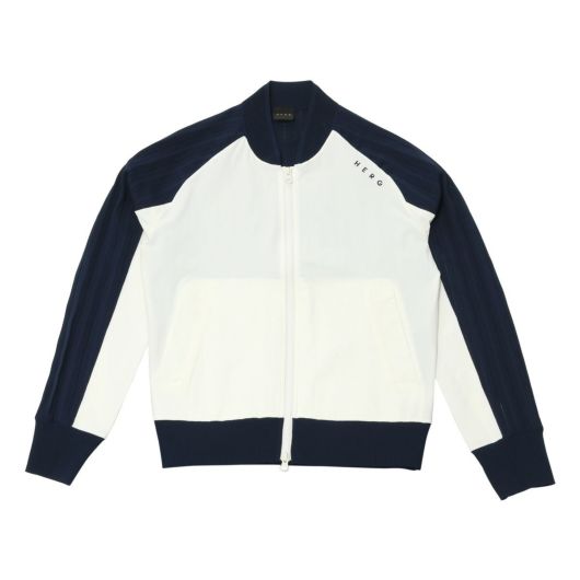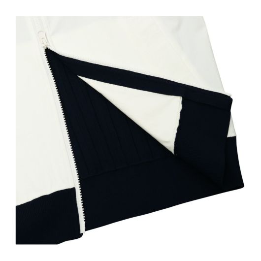 バックスタイルがニットプリーツのナイロンジップアップブルゾン。背中がニット製なので着たままスイングできるマストなアイテム。