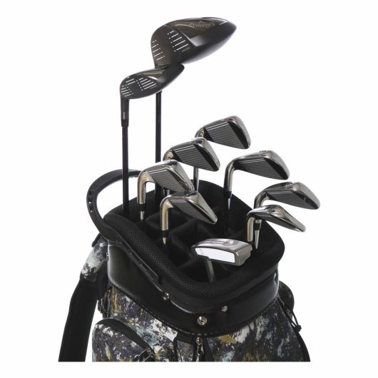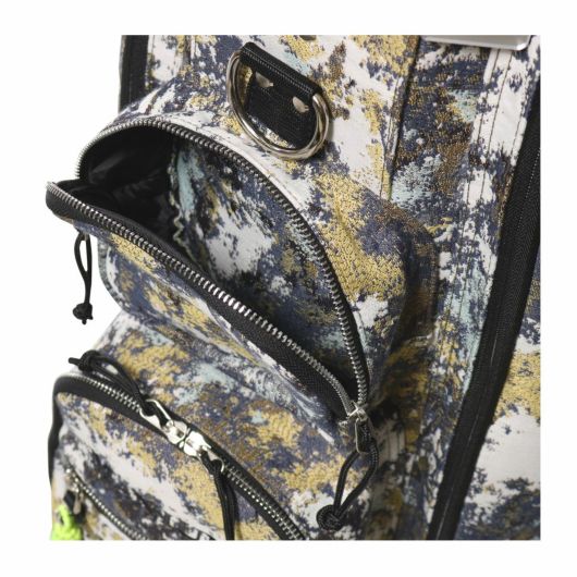 左右と背面に大型ポケット持つカートタイプキャディバッグです。収納力に優れ、かつ前面のボックスタイプポケットには小物を整理収納可能です。