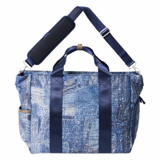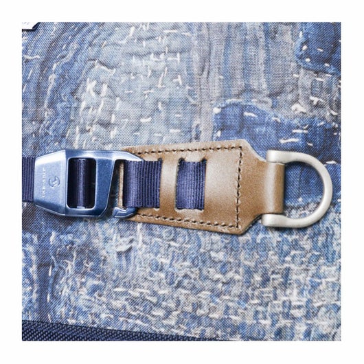 本体素材は600dのポリエステル糸を高密度に織ったオックスに、エイジングインディゴデニム柄、日本の伝統的な刺し子デザインやボロパッチワークといったFDMTL(ファンダメンタル)の美学を備えたテクニカル生地で構築したオリジナルの柄を、昇華転写プリントで表現しています。付属素材もレザーは防水鞣しを施したレザーを使用、底面の素材は、通常ナイロンの約5倍の摩耗・引き裂き強度・耐久性を持つINVISTA社の1680DコーデュラバリステックRナイロンを使用し、裏面にPVC加工を施すことで更なる強度と防水性を向上させています。