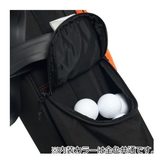 キャディバックのポケット部分にエアバック生地を用い、RairBagに貢献しています。廃棄エアバックならではの傷や折り目、縫い目がランダムに入ります。