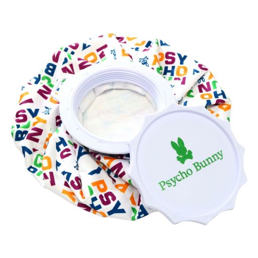 大容量の氷嚢で、口径が広く氷が簡単に入ります。蓋上部にはブランドロゴ入り。着脱可能なストラップが付いています。