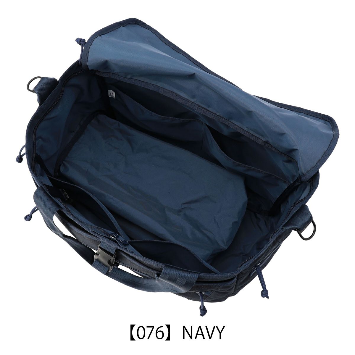 マチをしっかりとったメイン収納部は仕切り等を多用せず、嵩張る荷物が出し入れしやすい構造。