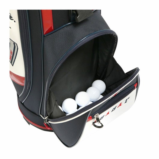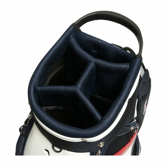 備考 |キャディバッグをクラブ・アクセサリー等収納物を入れた状態で立てる時は、倒れる恐れがありますので十分にご注意ください。キャディバッグは、車のトランク内等で横にしたまま長時間上に重い物を載せたり、強く押さえたりしますと変形する恐れがありますのでご注意下さい。
