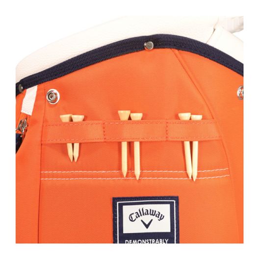 キャディバッグは、車のトランク内等で横にしたまま長時間上に重い物を載せたり、強く押さえたりしますと変形する恐れがありますのでご注意下さい。