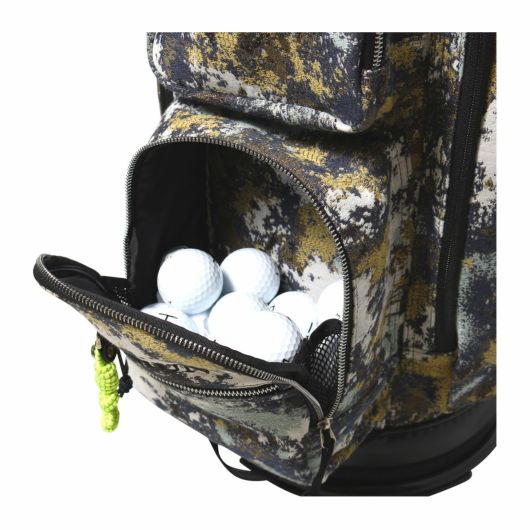 左右と背面に大型ポケット持つカートタイプキャディバッグです。収納力に優れ、かつ前面のボックスタイプポケットには小物を整理収納可能です。