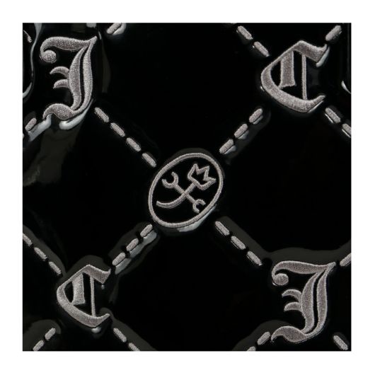 全面にほどこされた格子柄の刺繍が、思わず目を惹く主役級デザイン。しっとりマットな質感のレザーに、光できらめくエナメルを大胆にドッキング。甘すぎないのにちゃんと華やかで、絶妙な"こなれ感"を演出します。