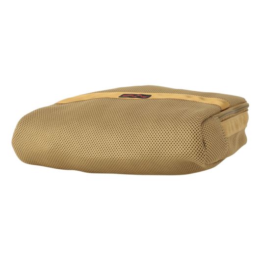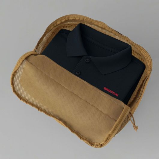 ・コンパクトにたためるランドリーポーチ。ラウンドで汚れたウェアなどを収納し、そのまま丸洗いすることが可能。