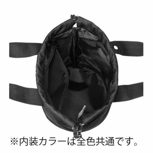 コロッとしたフォルムの巾着タイプは、紐を引くだけで開閉できるので、スムーズに荷物を出し入れできます。