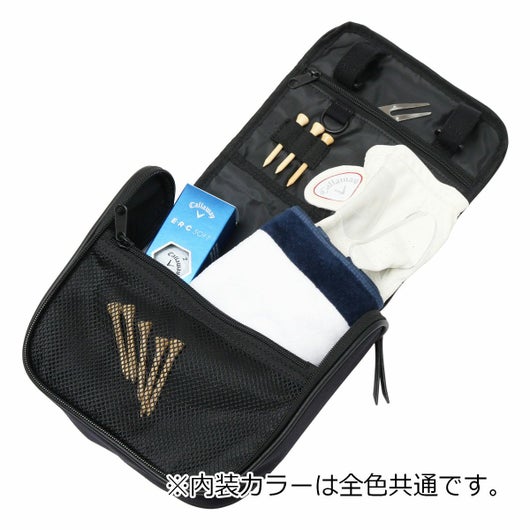 ゴルフ小物をまとめて収納できるユーティリティバッグ。 ゴルフカートの後部座席にあるハンドルに取り付け可能。