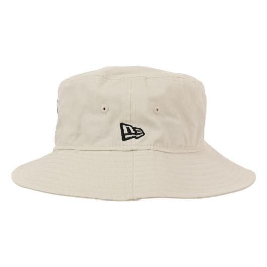 ニューエラとのコラボ商品、コットンツイル生地のアドベンチャーハットです。軽量化と着用時の通気性向上のために、ライニングを取り除いています。刺繍仕様のアイレットと着脱可能なあご紐が特徴です。