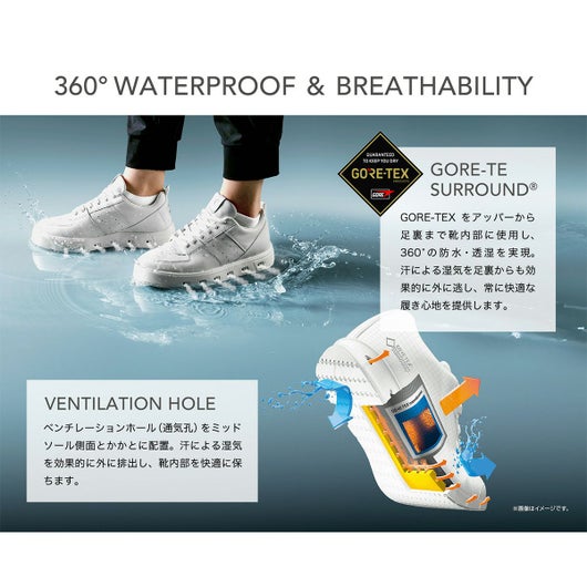 -革新的な快適性:シューズ全体360° GORE-TEX防水性・透湿性を両立し足をドライに保持