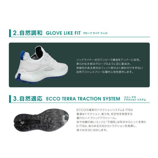 薄く柔らかく耐久性のあるECco Performance leather(パフォーマンスレザー)に 伸縮性のあるニットソックスライナーを合わせ、 柔らかでストレスフリーなフィット感を実現。同時にアッパー内部にはX-TENSAテクノロジーを搭載しホールド感を高めます。