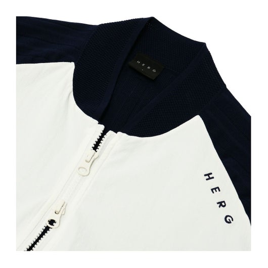 バックスタイルがニットプリーツのナイロンジップアップブルゾン。背中がニット製なので着たままスイングできるマストなアイテム。