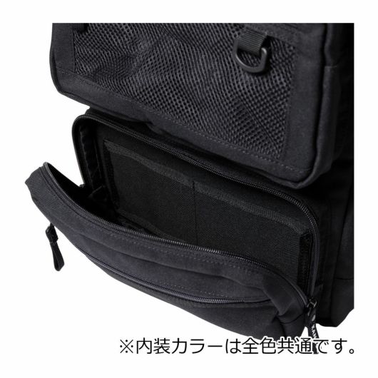 前面:上段マチ付きダブルファスナーポケット×1(内側:フリーポケット×5、ファスナーポケット×1)