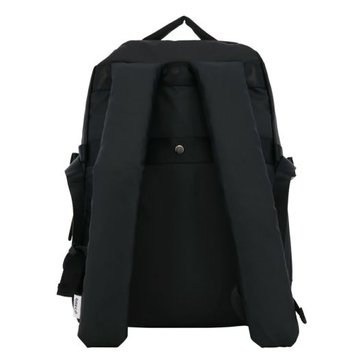 背面側にはファスナーポケットやペットボトルを収納できるポケットも付いています。