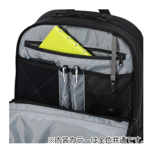 多様化するビジネススタイルにフィットする、スタイルと実用性を兼ね備えたシリーズ。メインルームは収納物の仕分けに便利な上下2層仕様となっており、内装仕切りファスナーを開くと大容量の1層タイプにすることができます。リュックの背面生地は、生地を傷めにくく毛玉になりにくいジャケットフレンドリー構造。キャリーオン機能付き。