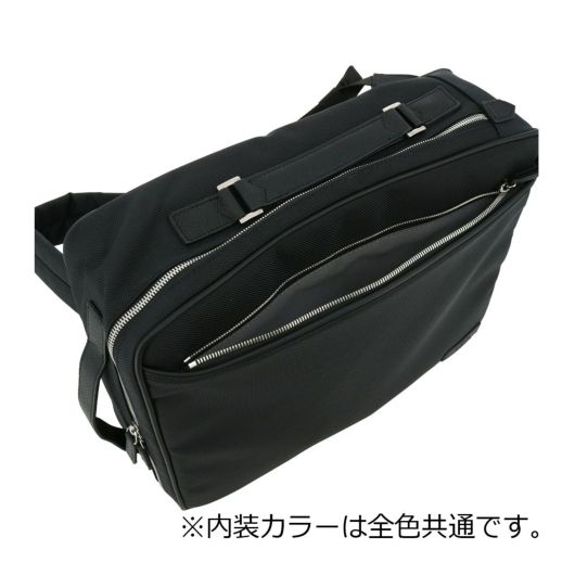 スタンダードで使いやすいスクエアフォルムのリュック。トップとサイドに持ち手があるので、背面のテープにショルダーストラップを固定すればブリーフバッグのように持てる2WAY仕様。本体のファスナーを全開するとト