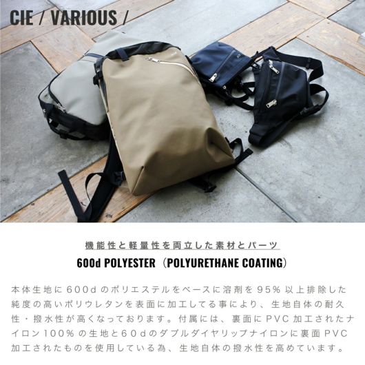 本体生地に600dのポリエステルをベースに溶剤を95%以上排除した純度の高いポリウレタンを表面に加工してる事により、生地自体の耐久性・防水性が高くなっております。