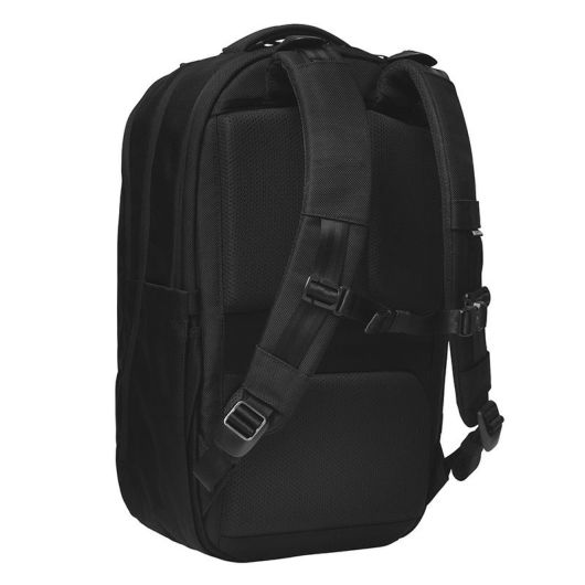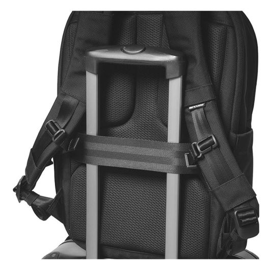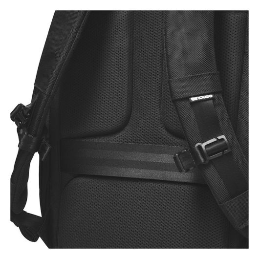 バックパネルには、キャリーバー取り付けストラップと3Dパディングメッシュ仕様