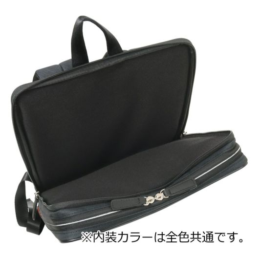 エコ通勤やジャケットスタイルにも合う、軽量ビズ~ビジカジトリップシリーズ「ルシェルII」。主素材にはシャンブレー調のポリエステル生地に撥水加工を施した生地を使用し、軽量に仕上げました。シンプルなデザインながらも、ハンドルが隠れる機能が特徴。フロントポケットの内側は見やすいオレンジ色のパイル地を使用。スマホなどの電子ツール収納に適したポケットなど機能性の充実したシリーズです。