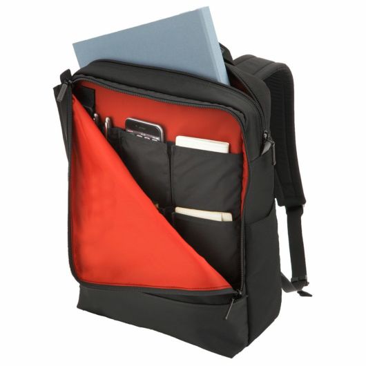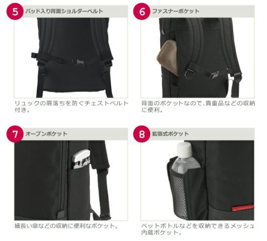薄マチのビジネスリュックに機能をプラスし容量アップしました。側面には拡張式ポケットとオープンポケット、背面には隠しポケット有ります。前面のポケットはL字に大きく開き、3段式オーガナイザーポケットは使い勝手抜群です。