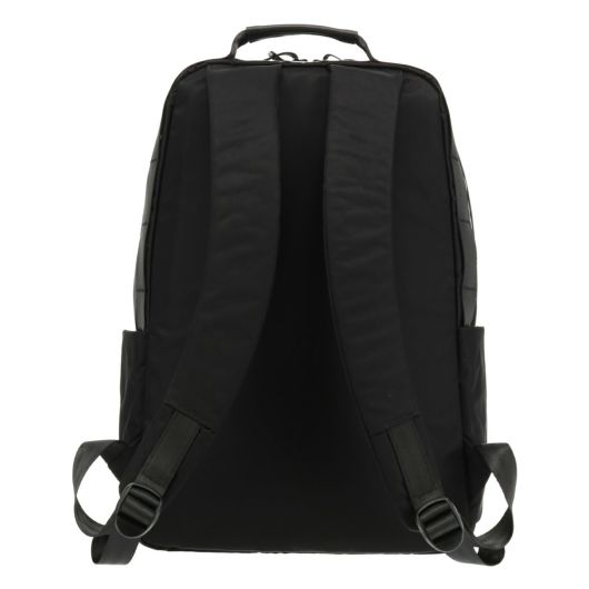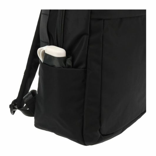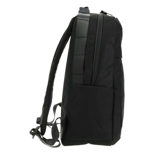 素材の柔らかくて艶のある質感を活かし丸みを帯びた形状。持ち手部分につながるシートベルトテープは持ち運びに便利なだけでなく生地を補強するという役目も果たしています。内側の背面部にはPC収納スペースがあり衝撃を吸収できるようにクッション性の高い素材を採用。