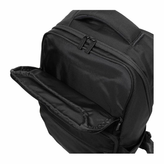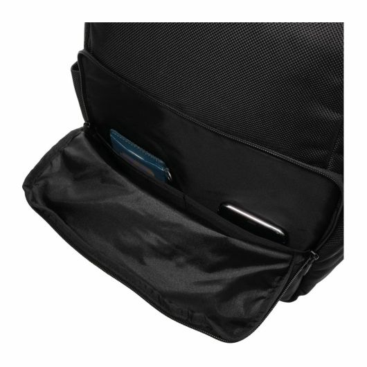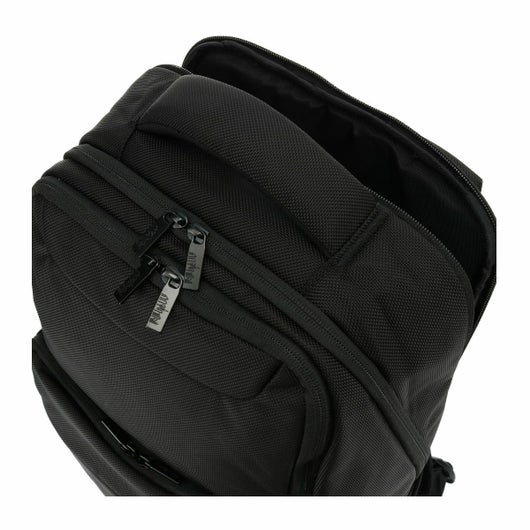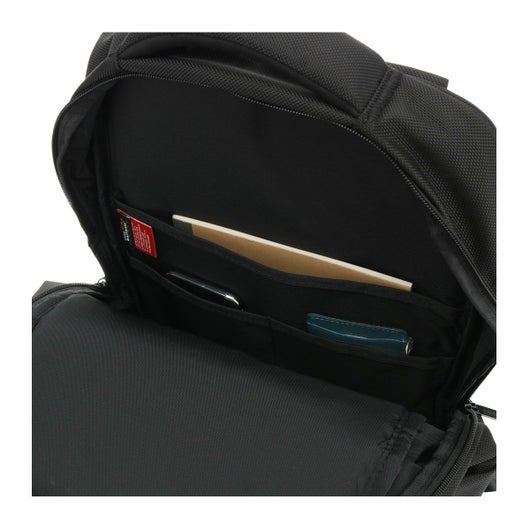 メインの開口部は開きやすいように立体的な仕様になっています。サイドのポケットも出し入れがしやすいように背面部は低く設計。背面にはノートPC専用スペースも備えられており13インチのノートPCを収納できます。