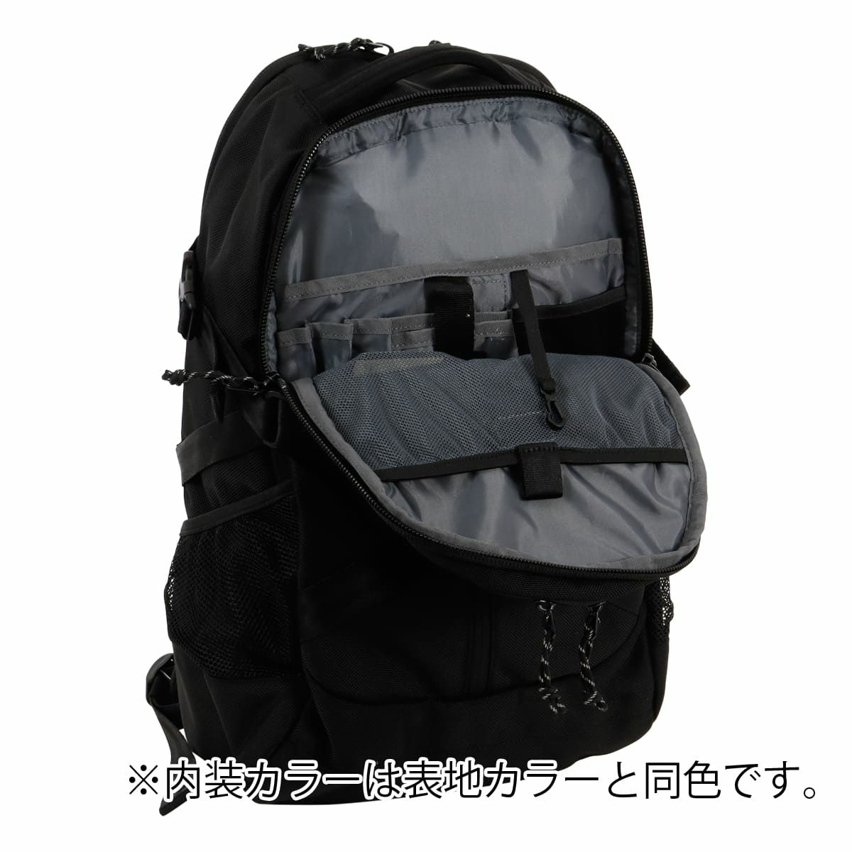仕様|(前面側)ダブルファスナー開閉(内側:フリーポケット×1、ベルクロポケット×3、ペンホルダー×3、ベルクロメッシュポケット×1、キーフック×1)