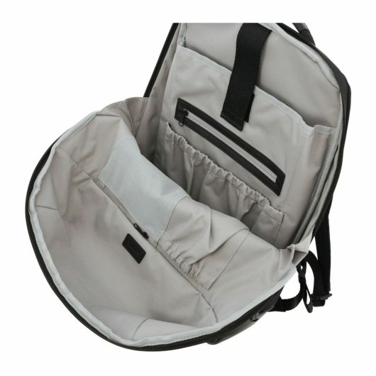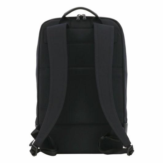 ハンドルや底面部分には軽量かつ強度に強いマイクロファーバーレザーを使用し、メイン素材には上品な適度に光沢のある撥水ナイロンを使用。